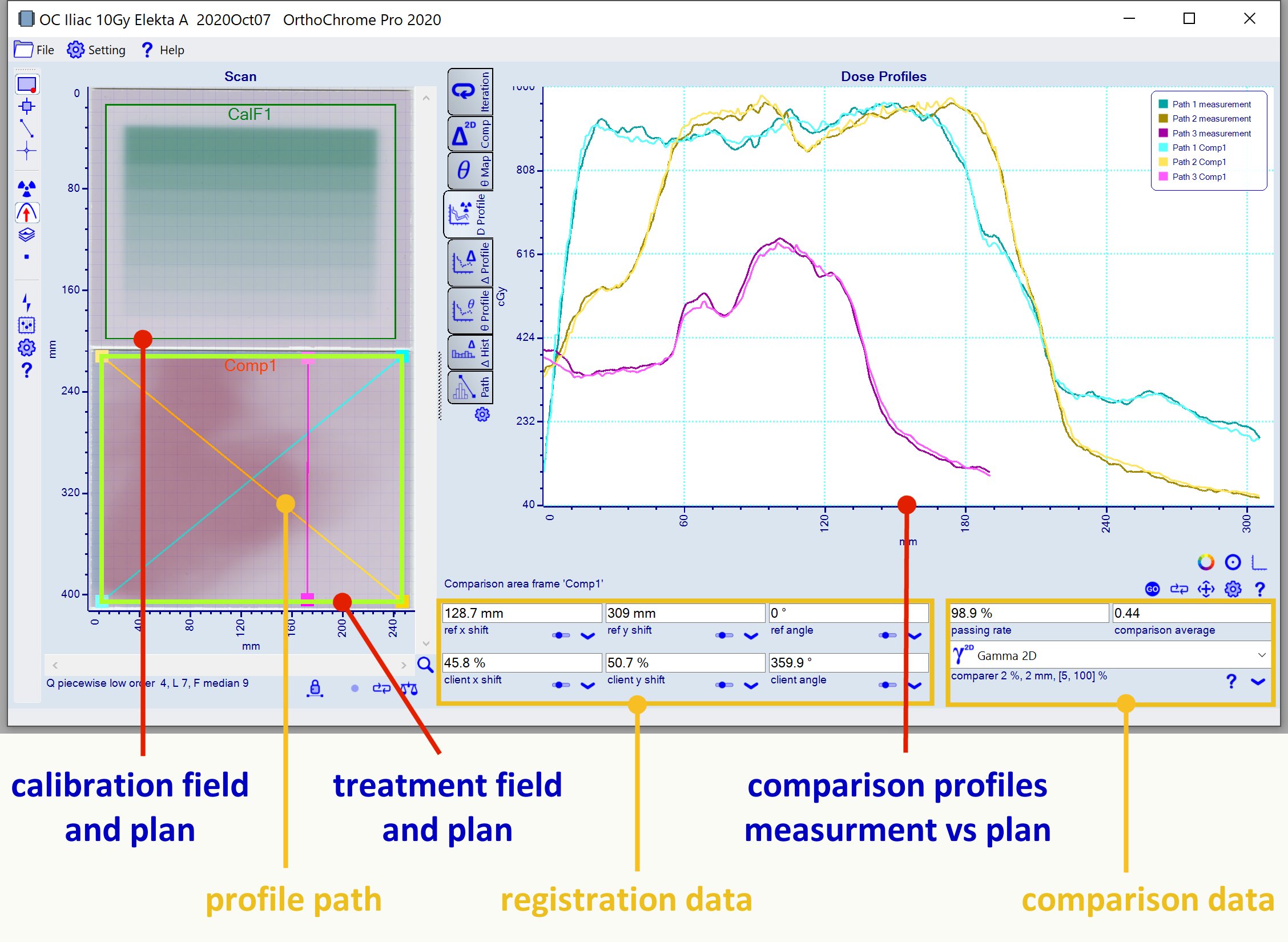 - Orthochromic protocol requires only 2 film exposures for entire analysis: the treatment field and the calibration field.