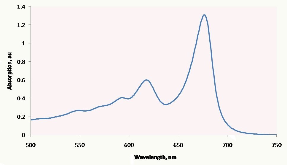The newly developed active component has an absorption peak at 670 nm as shown in the Figure below.