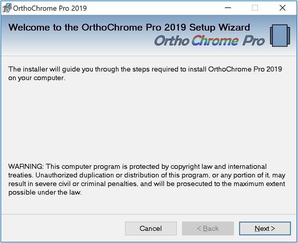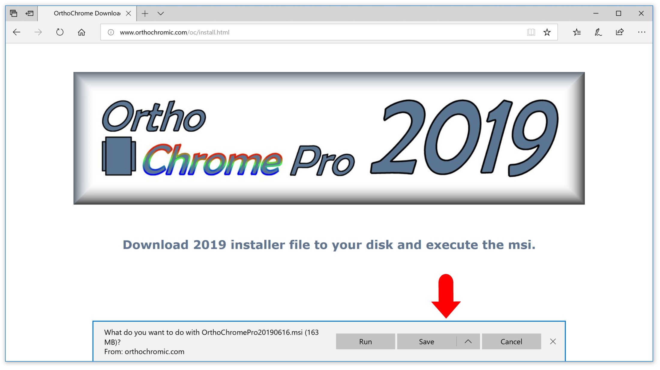 Run the downloaded OrthoChromeYYYYMMDD.msi file and follow the dialog instructions.