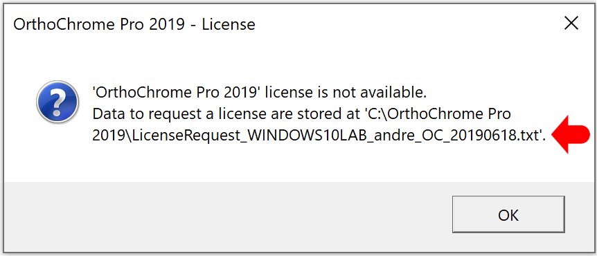 When started the first time, the OrthoChrome will generate the license request data and shows the location of the license request file in a dialog as shown below.