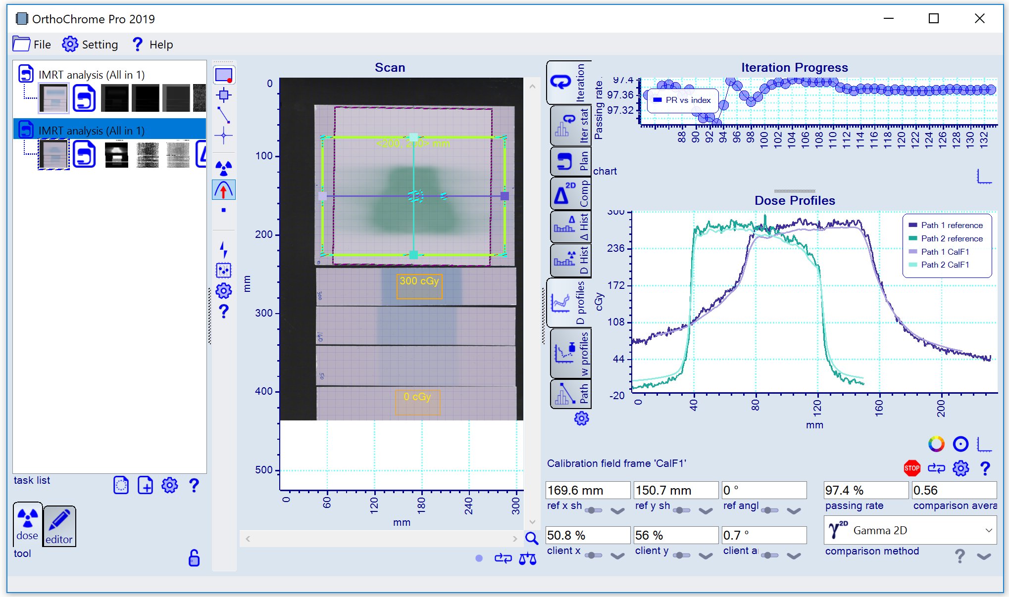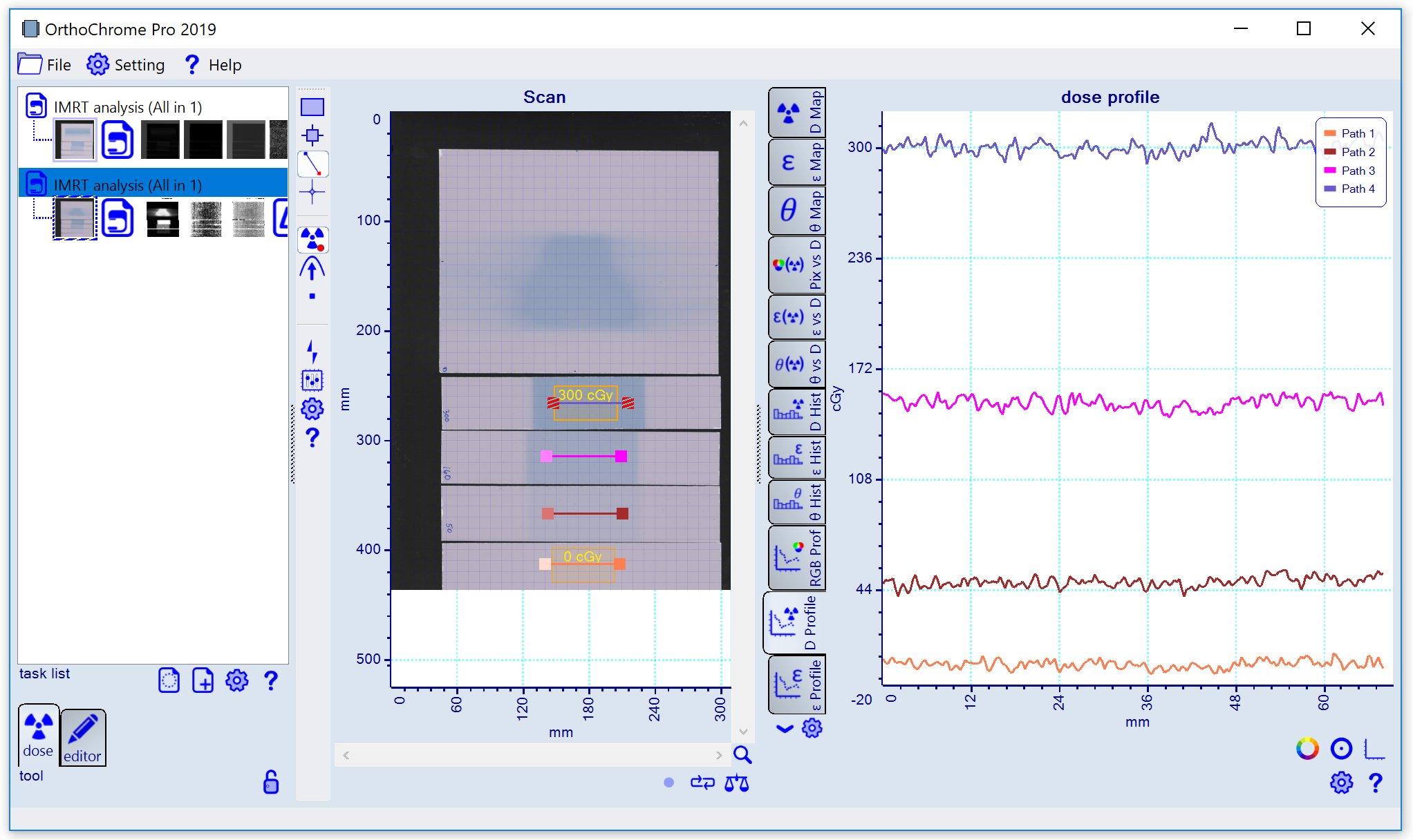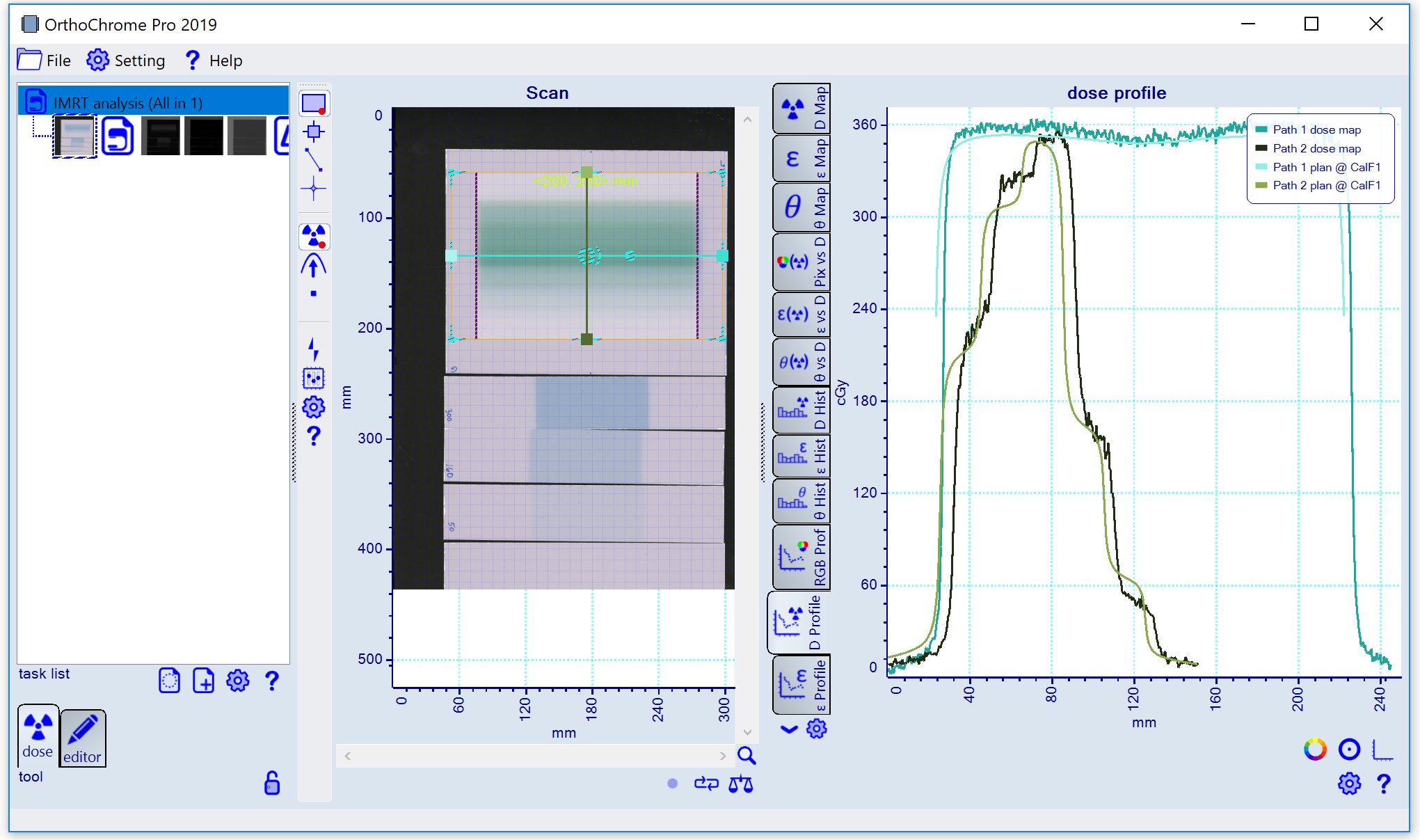 Purpose: Complete IMRT analysis with calibration, dose mapping and plan comparison.