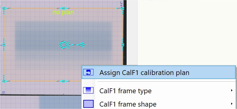 Right click inside the drawn frame and select in the context menu 'Assign calibration plan'