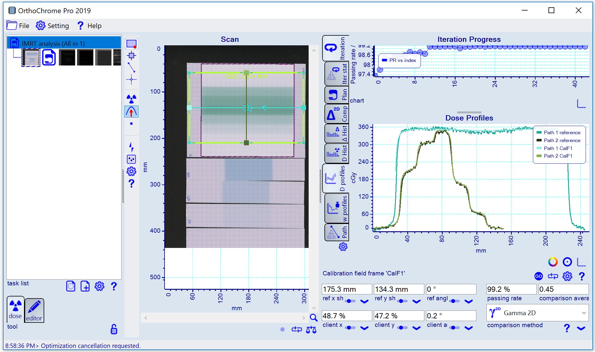 To start the optimization of the calibration plan registration press the