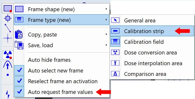 Each frame must carry the assigned calibration dose value - right click frame to change the calibration dose..