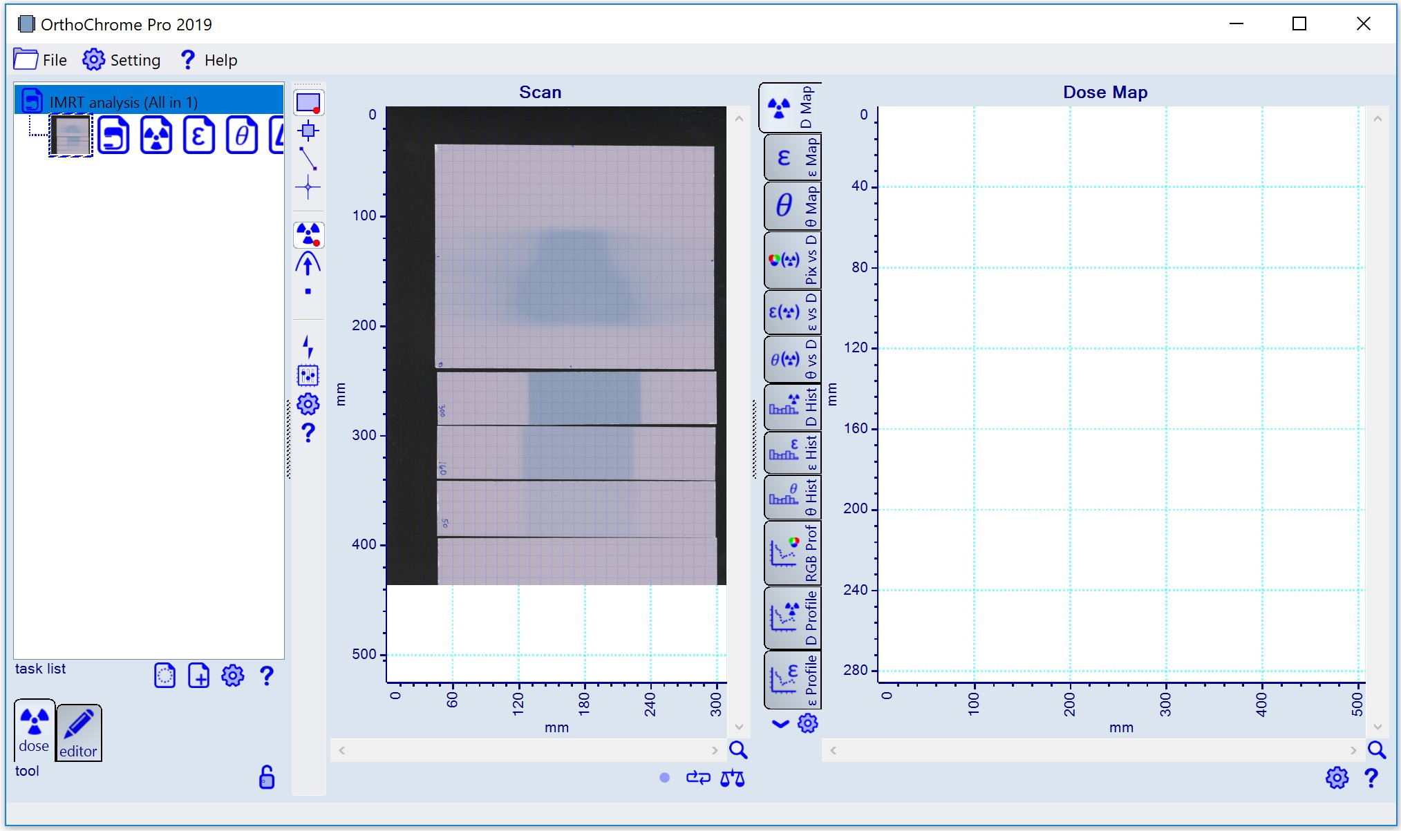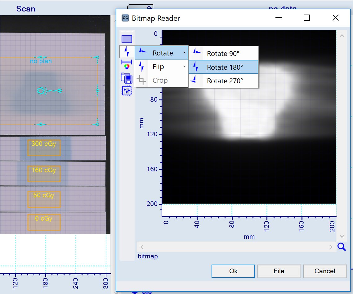 icon ('Landscape scan') and load bitmap 'Scan_Prostate 250 cGy Strips.tif'.