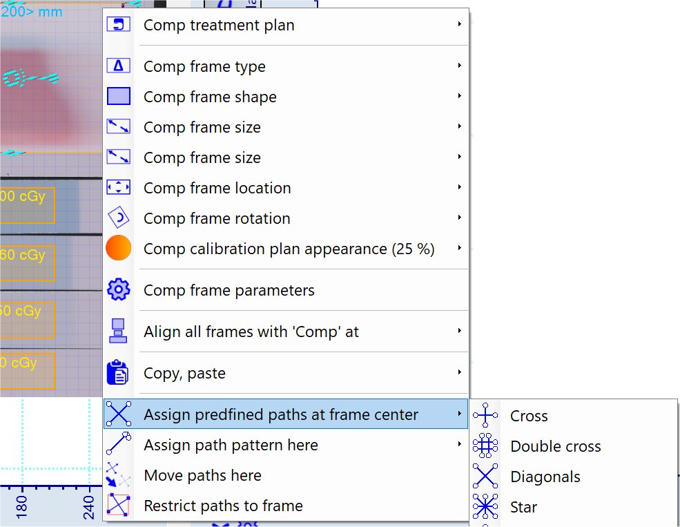 Assign path pattern to comparison frame to profile dose vs plan data, use context menu as shown below.